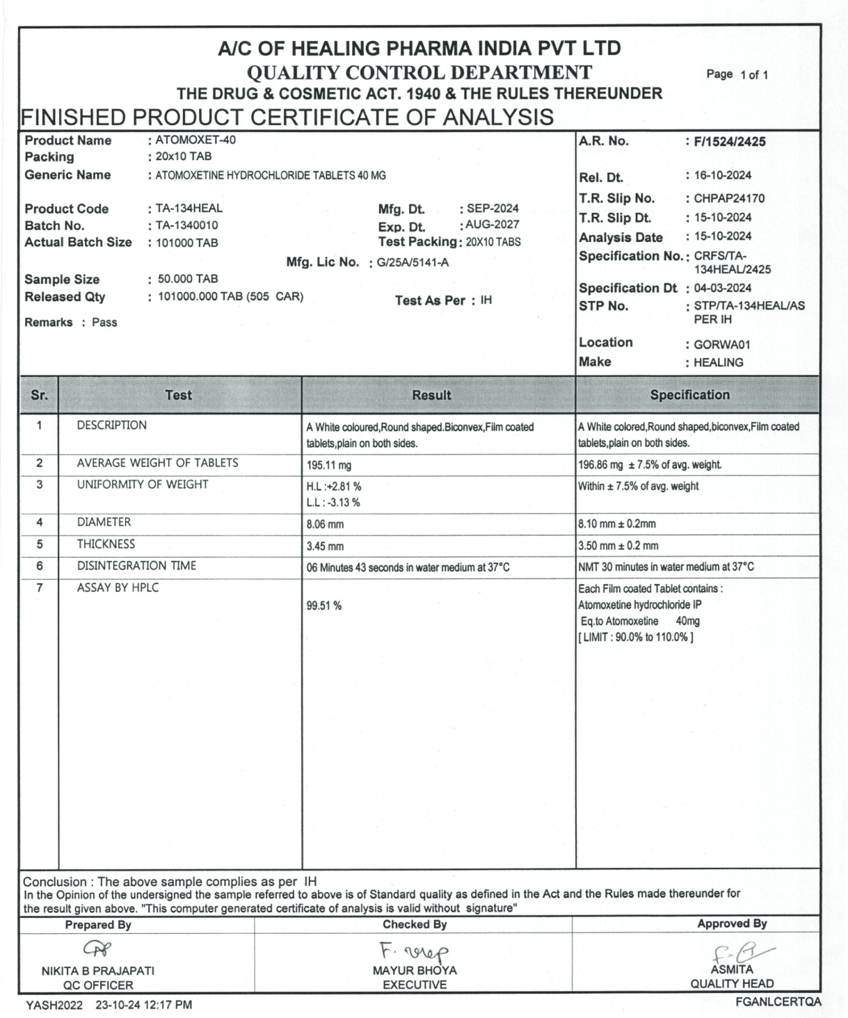 Atomoxetは、ADHD治療薬ストラテラのジェネリック医薬品で、有効成分アトモキセチンを含みます。多動性、衝動性、不注意などの症状を緩和し、精神的な落ち着きや集中力を高める効果が期待されます。中枢神経刺激薬とは異なり、依存性が極めて低いため、小児から成人まで幅広い年代で使用されています。