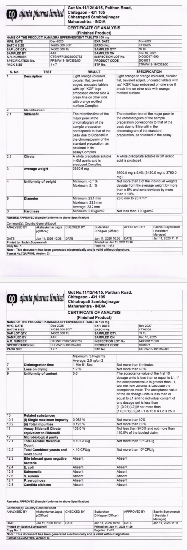 メーカーから直接取り寄せた最新ロットの検査結果です。主成分(シルデナフィル)が規定通り100%以上含まれていることが証明されています